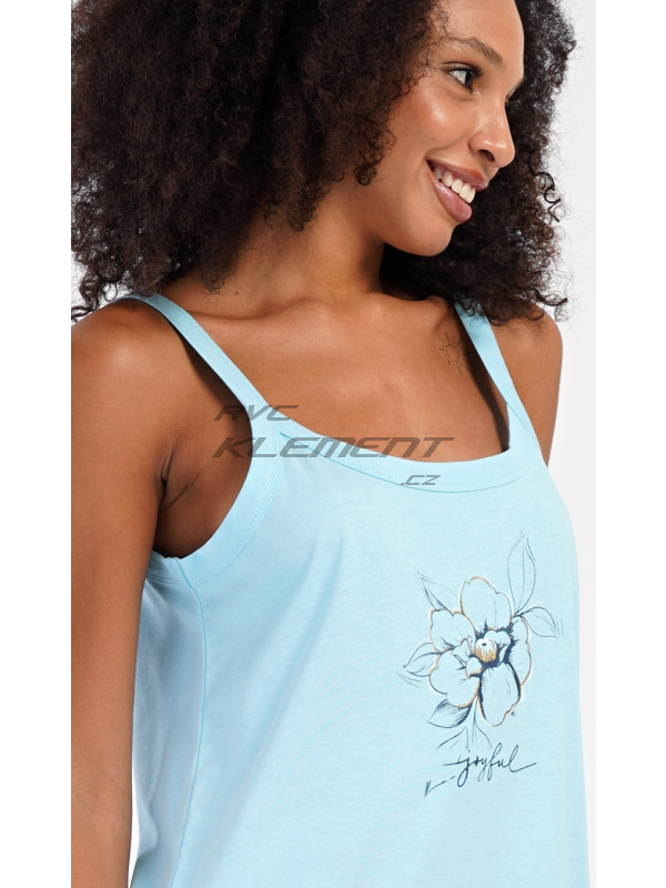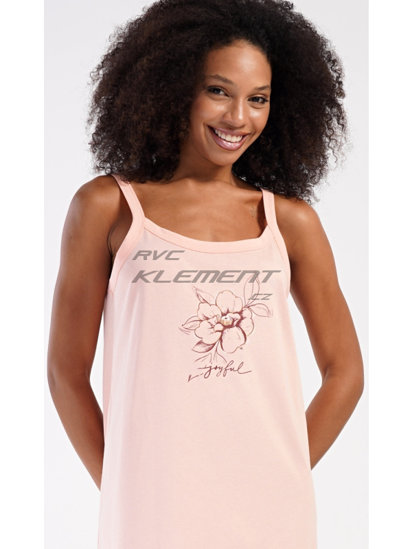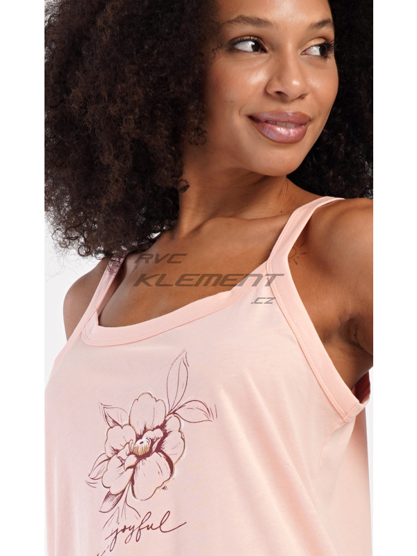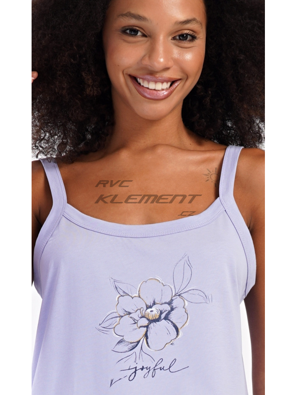 Dámská noční košile na ramínka Adriana. Dámská bavlněná noční košile na ramínka Adriana. Dámskou noční košilku na ramínka zdobí obrázek květu a drobný nápis. Použitý materiál s obsahem bavlny 100% je příjemný a poddajný na dotek. Pokyny pro údržbu: - 100% bavlna Míry naměřené na výrobku: