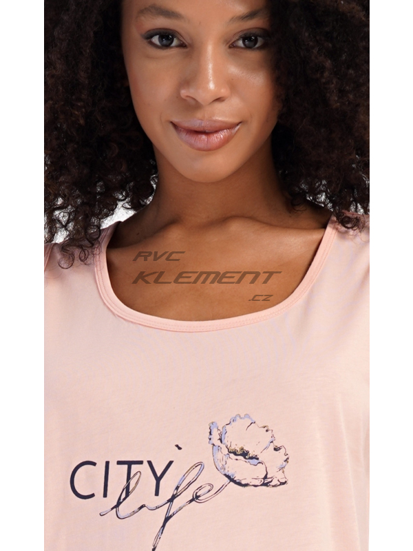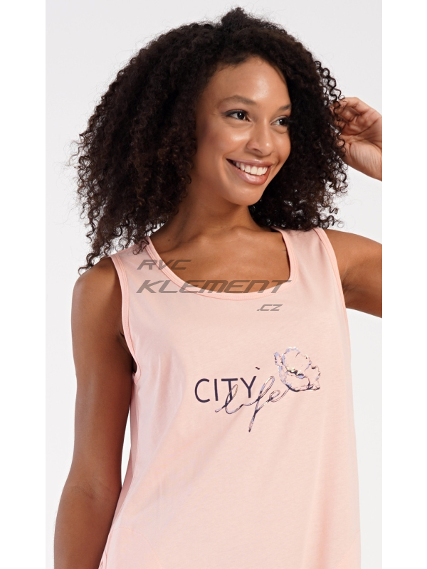 Dámská bavlněná noční košile na ramínka Agnes. Dámská bavlněná noční košile na ramínka Agnes. Dámskou noční košilku s širšími ramínky a praktickými kapsami zdobí obrázek květu a nápis ’City life’. Jistě ji využijete i jako letní šaty nebo pohodlné domácí oblečení. Použitý materiál s obsahem bavlny 100% je příjemný a poddajný na dotek. Pokyny pro údržbu: - 100% bavlna Míry naměřené na výrobku