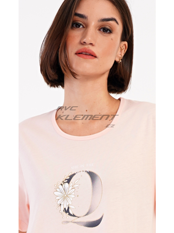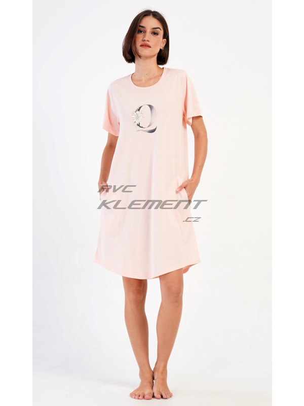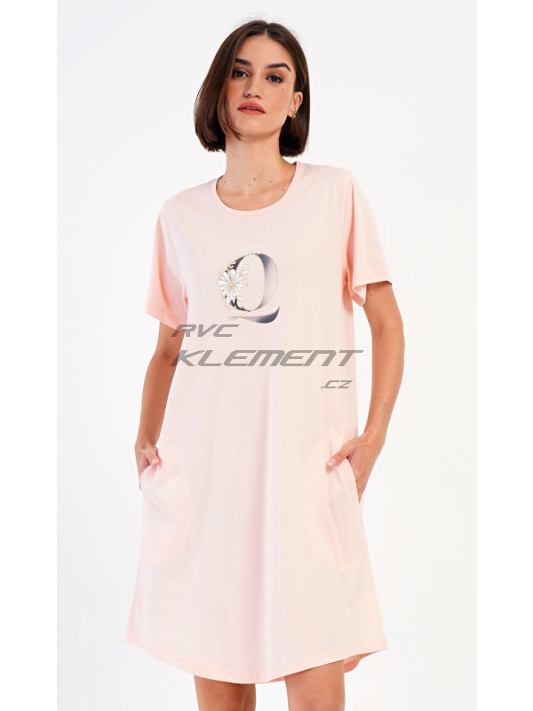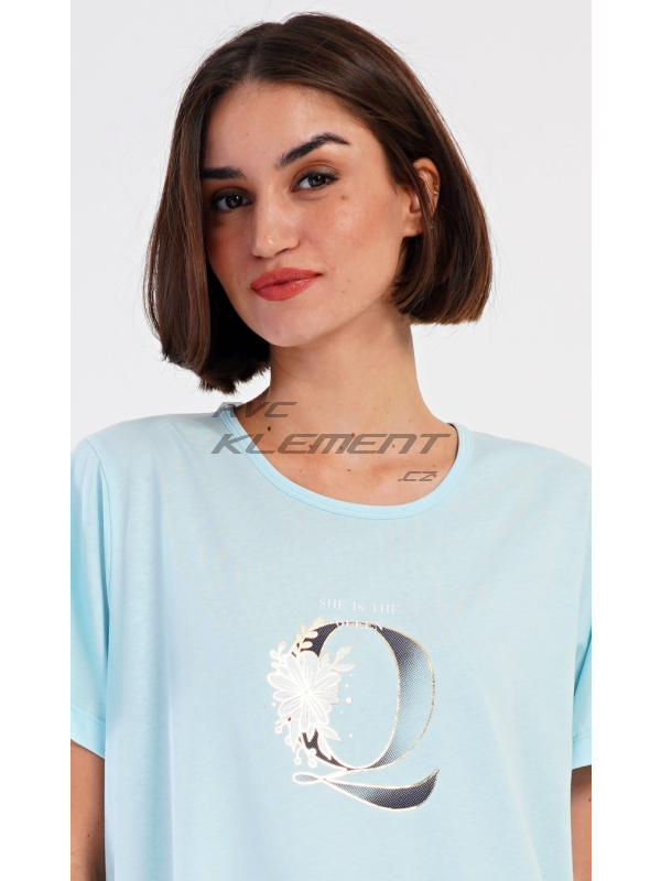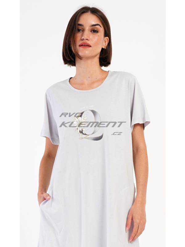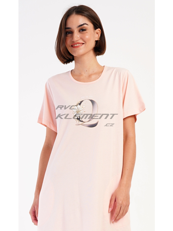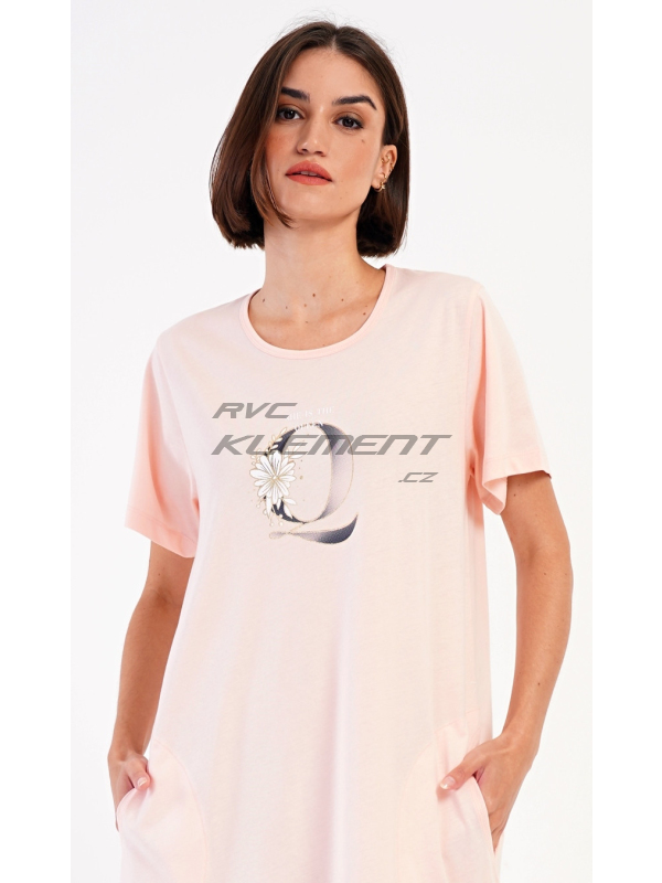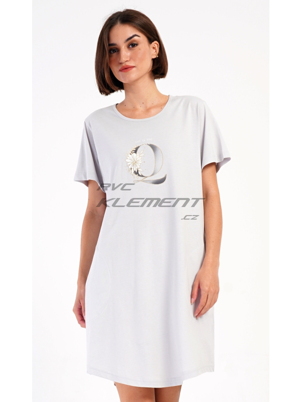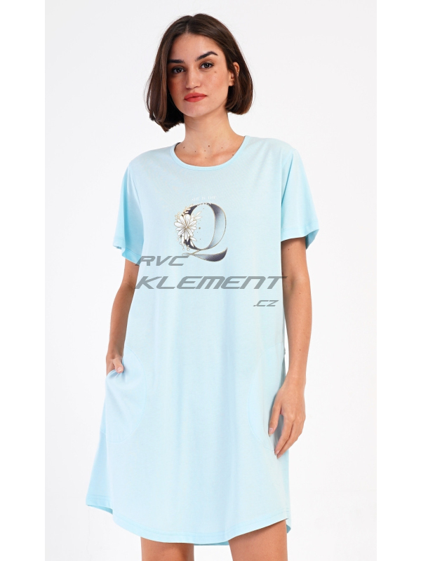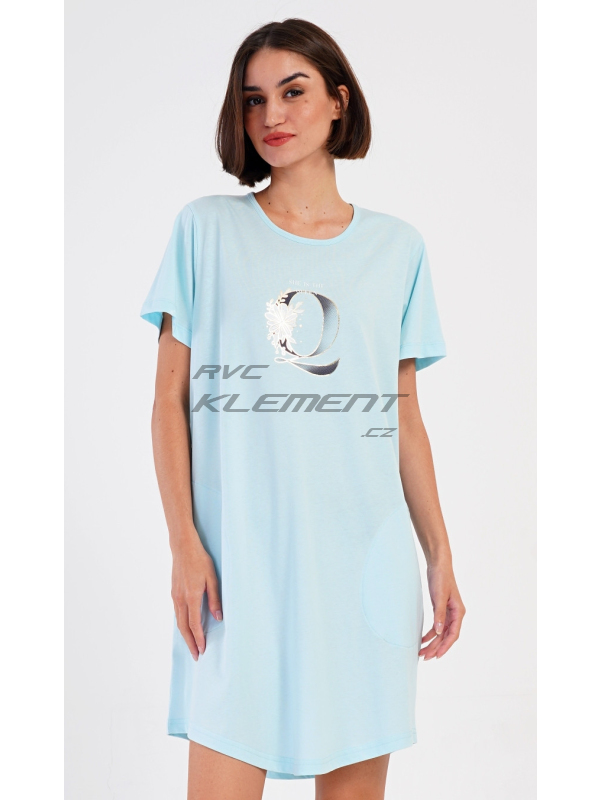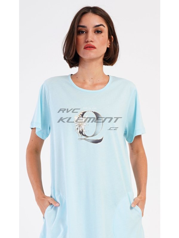 Dámské domácí šaty s krátkým rukávem Queen. Dámské bavlněné domácí šaty s krátkým rukávem Queen. Domácí jednobarevné šaty s kulatým výstřihem a kapsami zdobí na hrudi obrázek písmene Q a drobný nápis. Použitý bavlněný materiál je příjemný a poddajný na dotek. Šaty jsou pohodlné, využijete je na spaní a také téměř při všech volnočasových aktivitách. Pokyny pro údržbu: - 100% bavlna Míry naměřené na výrobku: