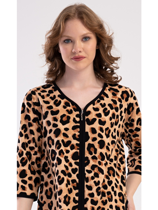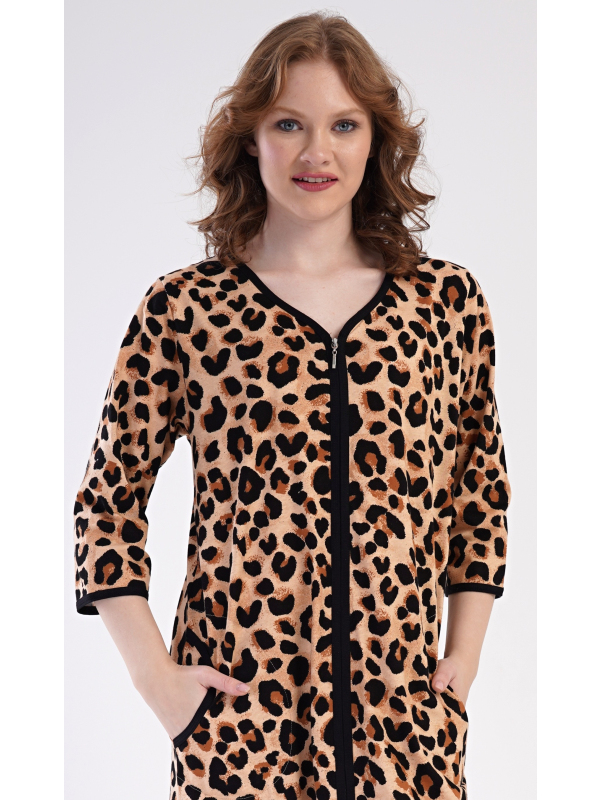 Dámské domácí šaty s tříčtvrtečním rukávem Leopard.