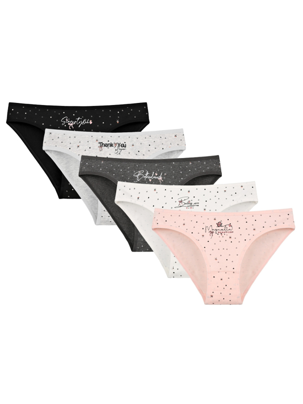 Dámské kalhotky Amelia. Slušivé klasické kalhotky jsou pohodlným typem spodního prádla pro všechny příležitosti. Jsou zdobené drobnými srdíčky a nápisem. Obzvláště oceníte materiálové složení - 95% bavlna a 5% elasten. Použitý materiál je příjemný a poddajný na dotek.