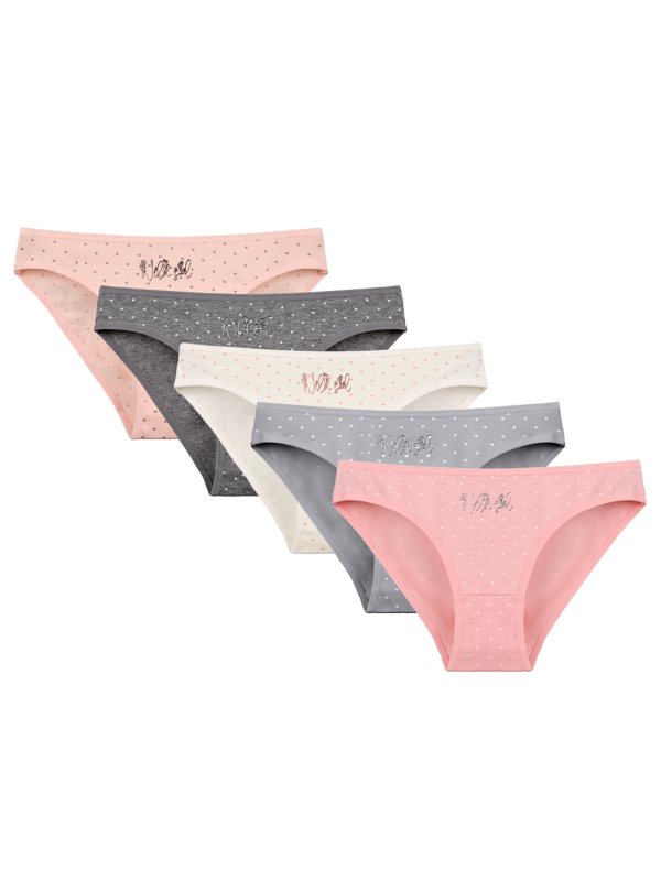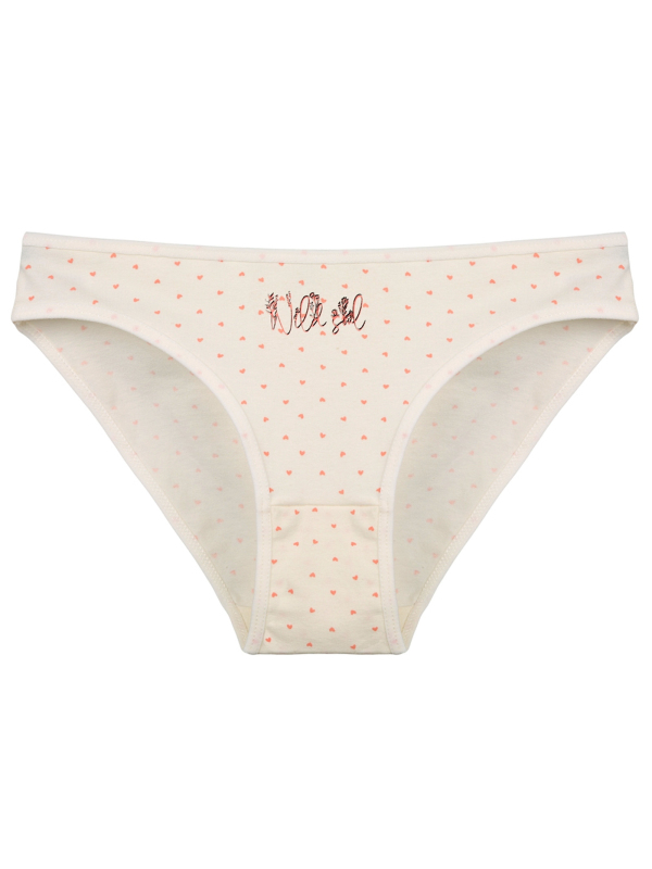 Dámské kalhotky Ava. Slušivé klasické kalhotky jsou pohodlným typem spodního prádla pro všechny příležitosti. Jsou zdobené drobnými srdíčky a nápisem. Obzvláště oceníte materiálové složení - 95% bavlna a 5% elasten. Použitý materiál je příjemný a poddajný na dotek.