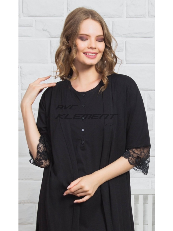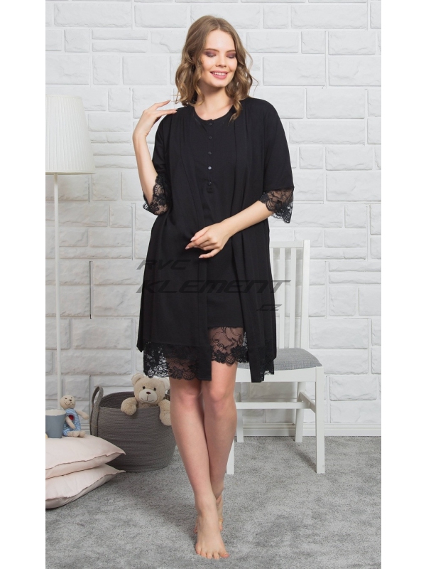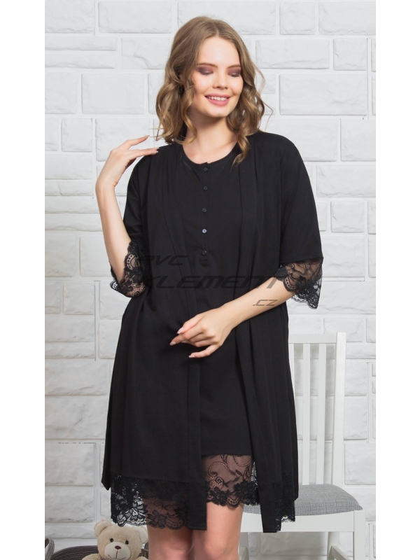 Dámský bavlněný župan s noční košilí Adéla. Pohodlný a přitom sexy komplet se skládá z noční košile a župánku. Košile má légu rozepínací na knoflíky a je zakončena krajkou. Stejná krajka je použita i na rukávech a spodním lemu županu. Použitý bavlněný materiál je příjemný a poddajný na dotek.