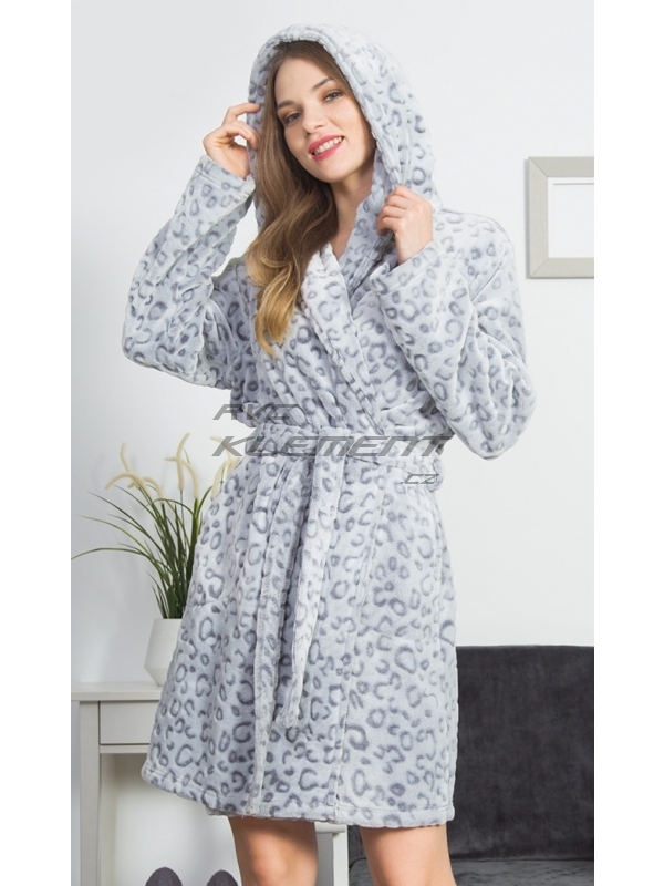 Název:Následující >><< PředchozíDámský župan krátký s kapucí Leopard grey