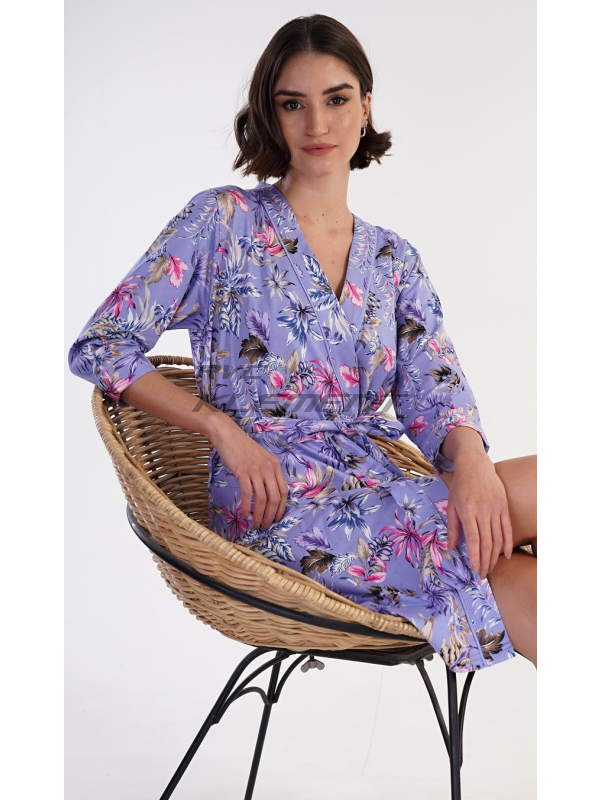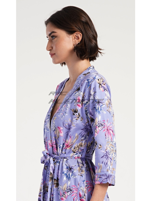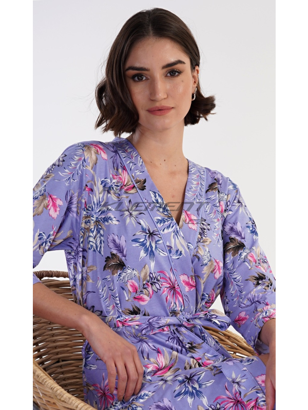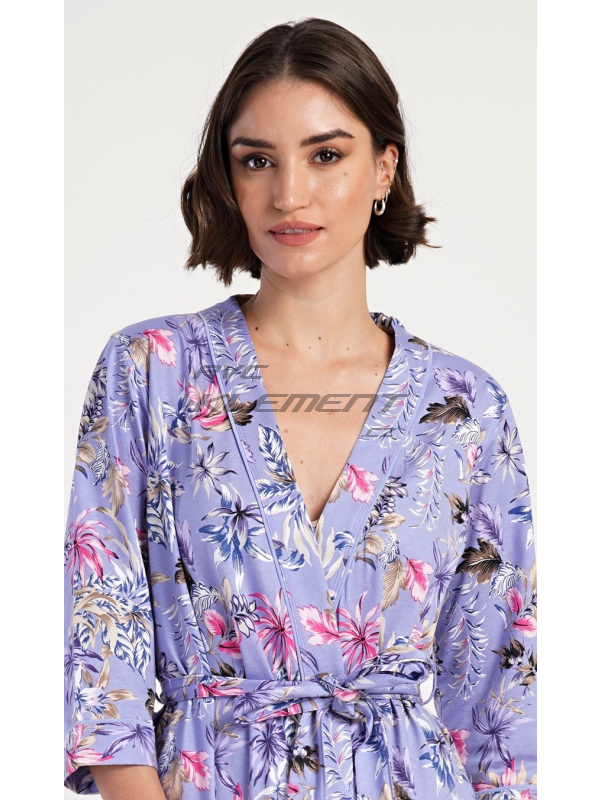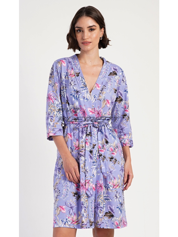 Dámský župan krátký Alžběta. Dámský krátký bavlněný župan Alžběta. Dámský župánek v délce po kolena je potišten exotickými květy. Župan má pásek ke stažení a praktické kapsy. Použitý bavlněný materiál je příjemný a poddajný na dotek, saje a oceníte ho i při koupání venku. Pokyny pro údržbu: - 100% bavlna Míry naměřené na výrobku:
