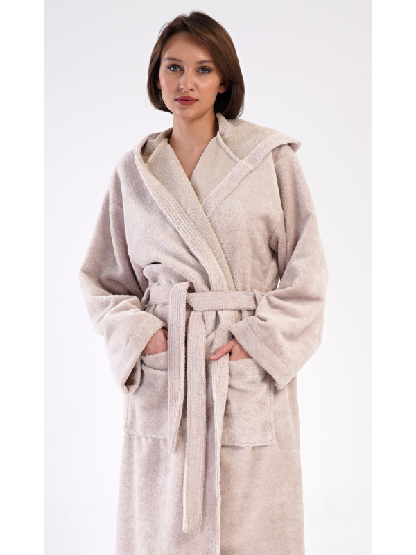Dámský dlouhý froté župan s kapucí Pláž.