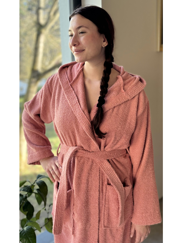 Dámský župan krátký s kapucí Grepfruit.Dámský krátký softový župan s kapucí Grepfruit. ...